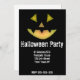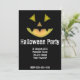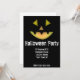 Plantilla de invitación de fiesta de Halloween con sonrisa de calabaza sobre fondo negro
