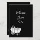 Una invitación personalizado o una plantilla de invitación con letras de guión elegantes y un conjunto de platería sobre una servilleta de mesa de bonito en blanco, gris y negro.