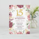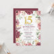 Celebre su día especial con nuestra plantilla de invitación de Quinceañera bellamente diseñada. Con un elegante número dorado "15" y rodeado de arreglos florales exquisitos en tonos de rosa y burdeos, esta invitación establece el tono perfecto para una celebración inolvidable de Quinceañera. El diseño de alta calidad asegura una apariencia sofisticada que impresionará a sus invitados y hará que su evento sea inolvidable