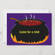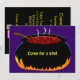 Estas invitaciones a la fiesta de personalizable de Halloween tienen un caldero de bruja negra en la parte delantera. Tiene un líquido rojo, burbujeante dentro y llamas debajo. La invitación dice: "Ven a comer".