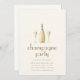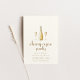 Esta elegante plantilla de invitación de fiesta con tema francés presenta un diseño chic con una botella de champán en el centro, flanqueada por dos copas de champán brillantes a ambos lados. La botella y las copas están sutilmente detalladas, evocando una sensación de sofisticación y celebración. Debajo de este centro de mesa, los detalles de la fiesta se muestran hermosamente en una fuente francesa juguetona pero elegante, lo que añade un toque auténtico al tema general. La plantilla captura la esencia del encanto parisino, lo que la hace perfecta para una soirée llena de elegancia y joie de vivre.