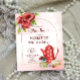 Plantilla de invitación para presupuestos de cumpleaños de fiesta de té. Flores rojas, maceta de polka rojo, taza de té, y un bizcocho, acuarela. Encantador para cualquier edad.