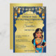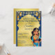 Invitación a la descarga digital instantánea de la fiesta de cumpleaños de las niñas de Bollywood de la India, linda pose de baile chica india para la fiesta de cumpleaños con temática india, tema azul y oro
