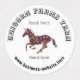 Redondear etiquetas comerciales con plantilla de logotipo en el centro. Curvas de texto alrededor de la etiqueta con el nombre de la empresa / negocio en la parte superior en negrita. Incluya un sitio web, dirección de construcción o información de contacto en la parte inferior. Se pueden añadir otras dos líneas cortas de texto encima y debajo del logotipo. La plantilla de logotipo (imagen de unicornio) es rectangular y su logotipo se ajustará al espacio de la plantilla, independientemente de la forma.