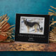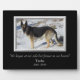 Un dramático fondo negro sólido es el escenario para la fotografía de tu mascota dentro de un bonito marco de color plateado. El texto también está en plata, con tres campos para que puedas personalizar. Elegimos "No está más a nuestro lado pero siempre en nuestros corazones" para el tributo a nuestra querida Tasha, pero puedes hacer que diga lo que te gustaría. *Tenga en cuenta que la imagen del marco se imprime en la superficie junto con tu fotografía.* Utiliza "Personalizar" y las teclas de flecha para colocar tu fotografía para una mejor visualización.