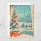 Captura el encanto nostálgico de un Navidad clásico con esta tarjeta de vacaciones vintage muy bien ilustrada. Con una pintoresca escena de un árbol de Navidad decorado por una gran ventana con vistas a un paisaje de invierno nevado, esta carta evoca el calor y la comodidad de la temporada de fiestas. Los colores retro y el diseño atemporal aportan un sentido de nostalgia, perfecto para enviar sentidos deseos de vacaciones. La parte posterior de la tarjeta incluye una plantilla de mensaje editable, que le permite personalizar su saludo o dejarlo en blanco para una nota manuscrita. Una elección perfecta para los amantes de la decoración vintage.