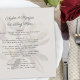 Plantilla de menú boda redondo con diseño de magnolia meridional. Color beige rosado con texto verde oscuro a personalizar en dos lugares. El título es el tipo de letra del guión con los nombres de la pareja y el título del menú. Los entrantes y todas las propuestas de menú se añaden en un párrafo. Este diseño funciona en forma redonda o cuadrada. Quite la opción del sobre como desee.