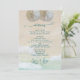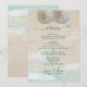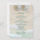Menú de boda de dólares de arena elaborado y único. Un fondo de arena de playa contiene su texto con el texto 'menú' en la parte superior. Todas las selecciones del menú se agregan en un párrafo utilizando texto impreso. La redacción de la muestra utiliza letras mayúsculas para cada sección del menú, como 'APERITIVOS'. Los nombres de pila de la pareja y la fecha del evento están en la parte inferior sobre espuma de mar que llega a la orilla. Este diseño también viene como descarga instantánea.