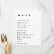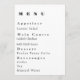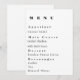 Un diseño de tarjeta de menú de boda minimalista y elegante que presenta tipografía limpia y un estilo serif refinado. Perfecto para parejas modernas que aman la papelería de boda atemporal, simple y sofisticada.
