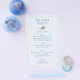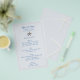 Plantilla de menú de parejas de estrellas para una boda junto al mar. Gris pálido-azul con texto azul oscuro, esta plantilla de menú asequible tiene dos estrellas marinas en la parte superior para representar a la novia y al novio. También utilice las líneas de texto para incluir la fecha y la ubicación del evento, el título del menú - para la ocasión - y añadir fácilmente todas las selecciones de comida en forma de párrafo. Utilizar espacios donde sea necesario para ajustar la redacción. El texto es un estilo moderno de letra de caligrafía impresa. Un delgado borde de línea beige rodea el texto y el diseño se ve mejor en este papel de tamaño. Se deben pedir al menos 25 menús al mismo tiempo.