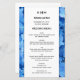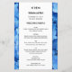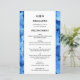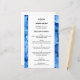 Plantilla de menú boda de borde floral azul. Monograma de tres letras en la parte superior con texto negro para la lista de menús.