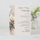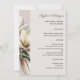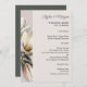 menú boda con temática sur. Flores de magnolia blanca decoran el borde sobre papel rosa-beige. El texto del menú está alineado al lado derecho. Personaliza con los nombres de la pareja en la parte superior. El título y la fecha están en negrita, con todos los elementos del menú enumerados en el formulario de párrafo. Agregue y quite los espacios necesarios para el evento. Revertir es verde muy oscuro. También viene como descarga instantánea para imprimir el suyo propio, o compartir en línea.