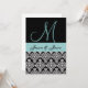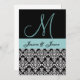 Esta invitación de color negro, blanco y azul acua con su patrón de damasco de brocado hace una elegante invitación de boda. Agrega tus nombres y monograma en la parte delantera, y tu invitación de boda en la parte trasera.