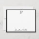 Tarjeta de nota plana simple personalizada de plantilla de monograma de caligrafía blanca en negro.