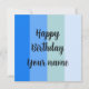 Patrón de franjas azules de Guay con texto: Cumpleaños feliz y una plantilla de nombre. Se ajusta a un estilo marítimo.