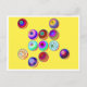 Orbes abstractos mostrados en un fondo amarillo adornan el frente de esta postal multiusos, disfruta!