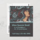 Plantilla de postal de salón con la cara de una mujer hermosa y el pelo largo y rizado