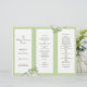 Plantilla de programa de bodas triples horgáneas. Añada su propio texto a las plantillas proporcionadas en este papel de lino de membrete (8,5 por 11 pulgadas) con flores de hortena verde claro y bordes de panel. Tendrán que doblarse en tres acordeones después de la compra. ***Elija cualquier tipo de papel. Al revés no habrá color ni imágenes. ..................