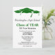 Este formato vertical de diseño de invitación a la reunión de clase minimalista incluye texto en negro y verde sobre un fondo blanco con tres tapas de graduación verdes como borde superior. La parte posterior es un azul sólido a juego. Personalice su información, elimine información o edite utilizando la herramienta de diseño para seleccionar un color de fuente, tamaño y estilo que prefiera.