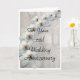 El color del segundo aniversario de bodas es blanco y el símbolo tradicional es el lino. Esta tarjeta presenta flores blancas con lino vintage en el fondo siguiendo la tradición. Puedes personalizarla cambiando el texto en el frente de la tarjeta. También puedes personalizar el color de la fuente y cambiar los colores de fondo de la tarjeta haciendo clic en "personalizar". Diviértete y haz que sea tuya o consíguelo tal como está. Más como esta en mi galería.