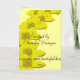 El color del primer aniversario de bodas es amarillo y el símbolo tradicional es el papel. Esta tarjeta presenta flores de papel amarillas siguiendo la tradición. Puedes personalizarla cambiando el texto en la parte frontal de la tarjeta. También puedes personalizar el color de la fuente y cambiar el color de fondo de la tarjeta haciendo clic en "personalizar". El interior de la tarjeta ha sido configurado para que ingreses tus propias palabras o versos. Diviértete y haz que sea tuya o consíguelo tal como está. Más como esta en mi galería.
