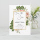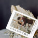 Esta elegante tarjeta de guardar la fecha presenta un marco dorado con una rosa de acuarela y una rama de vegetación como fondo de plantilla. Las palabras “Guardar la fecha” están escritas en letra negra sobre un fondo blanco. El nombre de la pareja, la fecha y el lugar de la boda también están incluidos en letra negra sobre un fondo blanco. Una elegante foto de la pareja se añade a la tarjeta con sus nombres y la fecha y lugar de la boda escritos debajo.