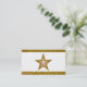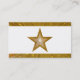 Diseño moderno con una estrella dorada y blanca en un fondo blanco brillante. Plantilla de tarjeta de visita con un diseño de personalizable para que pueda personalizar con su propio texto, imágenes e ideas. Tenga en cuenta que se trata de una imagen impresa creada con fotografías originales y técnicas digitales, que no brilla ni contiene chispas reales.