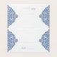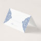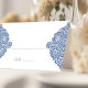 Mejore la configuración de la tabla boda con esta elegante plantilla de tarjeta de lugar inspirada en vintage. Con intrincados motivos florales azules en ambos lados, esta tarjeta ofrece una estética clásica y atemporal que complementa varios temas bodas. La línea delicada para escribir el número de la mesa aporta un toque sofisticado, mientras que el diseño floral blanco y azul vintage refleja el encanto de los tradicionales motivos victorianos. Perfecto para recepciones de bodas, duchas de novias o cualquier reunión elegante, estas tarjetas guiarán a los huéspedes hacia sus asientos con estilo.