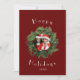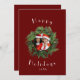 Las tarjetas de Navidad personalizadas pueden ser personalizadas con foto y mensaje. Tarjeta de vacaciones roja personalizada con plantilla de foto.