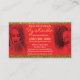 Este es un diseño de tarjeta de visita / tarjeta de cita para estilistas de peluquería y localistas en la comunidad afroamericana. Los colores son rojo y purpurina dorado. Imagen de un trenzado de pelo. Personalizar esta plantilla para convertirla en la tuya agregando toda tu información, incluyendo tus cuentas de redes sociales como facebook e instagram. Entregar a los clientes como tarjetas de cita.