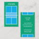 Plantilla de tarjeta de negocios del entrenador de bolas de bolas. tarjeta deportiva personalizado para jugadores, entrenador, entrenador deportivo, profesor profesional, club, liga infantil, torneo, entrenamiento, clínica, profesor, escuela, academia, constructor de cortes, etc. Plan de corte verde azul en colores de personalizable. Vista superior de pista de pickleball con líneas.