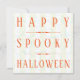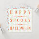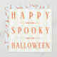Plantilla de tarjeta de Halloween de tamaño estándar cuadrado de 5.25" x 5.25" con algunos remolinos y rayas que dicen, "Feliz Halloween fantasmal". Cambia los colores de fondo, el tamaño y agrega tu propia copia, disfruta y boo!