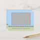 Anuncio moderno de nacimiento de niños en azul, marrón y verde. Personalizar esta plantilla de tarjeta con una foto al frente y las estadísticas al fondo.