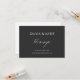 Esta es una plantilla de tarjeta RSVP de Boda Negra. ¿Está buscando una tarjeta RSVP elegante y moderna para añadir a su invitación de boda que se pueda personalizar a su estilo único? No busque más allá de nuestra plantilla de tarjeta de respuesta minimalista, perfecta para la novia DIY. Añade fácilmente tu propio QR para dirigir a los invitados a tu sitio web boda. Ahorre tiempo y dinero sin comprometer la calidad o el estilo al agregar su papelería.