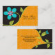 Gran plantilla de tarjetas de negocio de flores estilizadas color turquesa. Un diseño elegante e impresionante, con una flor turquesa audaz con hojas verdes sobre fondo negro y naranja. En el naranja hay un patrón de damasco. Haga clic sobre el Personalizar y elija entre más de 200 colores para cambiar el color de fondo (naranja). Ideal para una florista, textil o para una tarjeta de perfil personal.