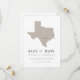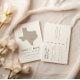 Esta plantilla de save the date de boda DIY PRINTABLE presenta un mapa de Texas con un toque de color rosa y una fuente manuscrita con un estilo edgy. Utilice esta plantilla para editar las fuentes, el color de la fuente y el color de fondo para que se ajusten a las necesidades de su evento. Mueva el corazón y el destino para resaltar la ubicación de su boda.