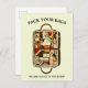 Esta plantilla de invitación de viaje de vacaciones incluye un ilustracion antiguo de un tronco y su contenido. Puede personalizar fácilmente el texto y personalizar el color de fondo de esta plantilla.