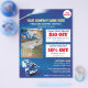 Personalizar este diseño de plancha de volante de lavado a presión (lavado de energía) para satisfacer sus necesidades y negocios. Esta plantilla de lavado a presión muestra el fondo de la arandela a presión y de las cuentas de agua.