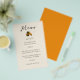 Plantilla de menú boda de presupuesto para una boda de otoño. Papel fuera de blanco con escritura moderna y negra. Título "Menú" en la parte superior con dos calabazas debajo - un signo de otoño. Lista de alimentos de recepción en un párrafo. El texto de ejemplo utiliza letras mayúsculas para separar las secciones. Añadir espacios cuando sea necesario. El dorso del periódico asequible es naranja.