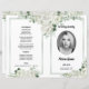 Hermosa plantilla del programa funerario floral blanco, fácil de editar e imprimir. Programa plegado. Tamaño de despliegue : 11x8.5 in Después del tamaño de pliegue: 5.5x8.5 pulgadas