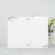 Papel rodante en blanco para imprimir tu propio programa de boda u otros artículos. El papel blanco sencillo tiene adornos frondosos de color dorado en las esquinas. El reverso es de color dorado oscuro y sólido.