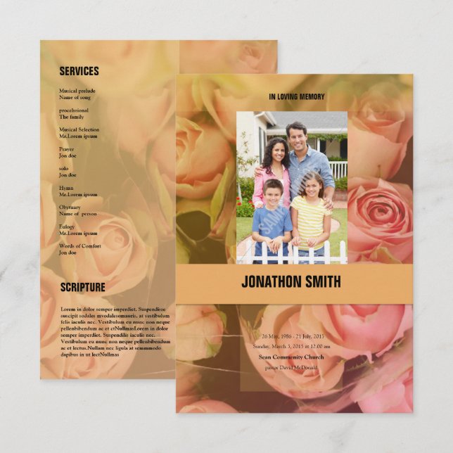 Plantilla de programa funerario imprimible. plantilla obituaria. plantilla de programa conmemorativo. fácil editar todo el texto y la foto