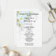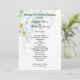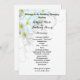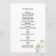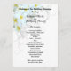 Plantilla de programa de boda de Hawái plana. Blanco con flores blancas de plumería y texto negro en ambos lados.