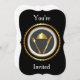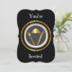 Plantilla en blanco de invitación a cenar. Cena Invitación a cenar, personalizar tu información de eventos, color de estilo y más. Oro metálico con fondo negro.