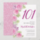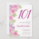 Esta bonita invitación de cumpleaños 101 con flores de acuarela y helechos es perfecta para una fiesta femenina. Este diseño presenta una variedad de rosas rosadas y helechos, y es una buena opción femenina para un evento especial para celebrar un cumpleaños importante.