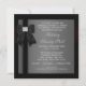 Invitación formal de evento corporativo, limpia y elegante, de color gris acero negro y diamante, con forma cuadrada para fiesta. Esta hermosa invitación de fiesta de corbata negra en blanco y negro se personaliza fácilmente para su evento simplemente eligiendo el botón "¡Personalízalo!" para comenzar a agregar los detalles del evento, el estilo de fuente, el tamaño y color de la fuente, y la redacción. Tenga en cuenta que todos los stickers, tarjetas y diseños de invitaciones que encontrará en Zazzle son gráficos impresos sin joyas reales, lazos, partes o piezas en relieve, repujados o añadidos.