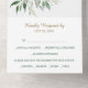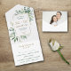 Esta invitación a la boda durante toda la temporada con tarjeta RSVP desgarradora combina elegantes imágenes acuarelas de hojas verdes azules con tipografía moderna. El marco dorado interior está adornado con hojas suaves, y la solapa exterior muestra tu propia fotografía. El texto de su personalizado es una combinación de escritura manuscrita y fuentes tradicionales en color dorado y verde azul, y hay muchos campos para su información. Si no necesitas un campo de texto, solo tienes que dejarlo en blanco. Siempre estamos contentos de ayudar, así que siéntase libre de enviarnos un mensaje si necesita ayuda. Si tienes una recepción tipo buffet, puedes trabajar contigo para rediseñar la parte del RSVP, así que no dudes en preguntar.