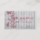 Esta plantilla preciosa de la tarjeta de visita se hace en un bordado que mira el estilo de gráficos, con las flores y las mariposas contra un fondo gris resistido de la raya. Personalizar con su información sobre el frente y de nuevo a juego sus necesidades. Cambie el estilo del texto, color, tamaño, e incluso añada más campos del texto si usted necesita.