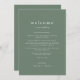 Esta plantilla de itinerario de boda sabio del fin de semana de la Colección Emelia es perfecta para una boda de destino con carpintería. El diseño de color verde sabio oscuro presenta una tipografía rústica y sencilla con un ambiente montañoso de bosques. En la parte delantera de la nota de la bolsa de bienvenida se incluye una carta de bienvenida boda y en la parte trasera está la cronología del itinerario boda. Estas notas son perfectas para bodas de destino y bolsos de bienvenida para huéspedes del hotel.