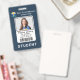 Una moderna placa de identificación de estudiante minimalista. El diseño incluye el logotipo y el nombre de su escuela. Muestra una gran foto de identificación de estudiante. La información puede ser personalizada y hasta ahora incluye el nombre del estudiante, el número de identificación, la fecha de emisión y la fecha de vencimiento, debajo de ese código de barras. En la parte inferior muestra la designación del estudiante. En la parte posterior del Badge hay un código QR que puede usar. Puedes vincular cualquier cosa que quieras, por ejemplo: un programa de estudios, una cartera de estudiantes o códigos QR que tus profesores proporcionen. Esta tarjeta de identificación también funcionaría para los profesores. Personalice los elementos de diseño y los colores para que coincidan con su escuela y elimine lo que no necesita. Color: verde